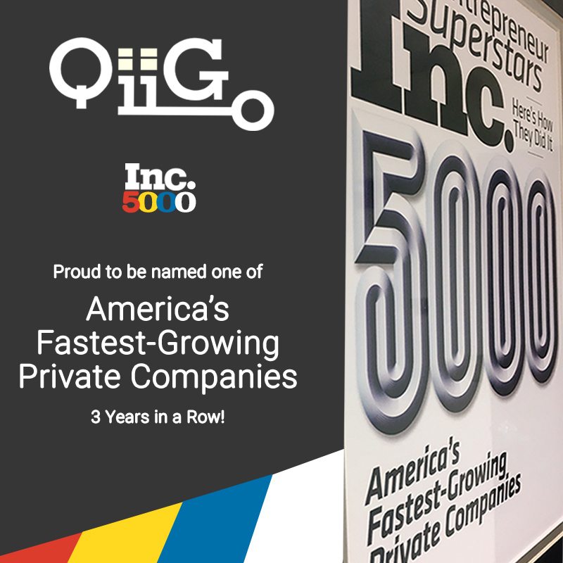 Qiigo is proud to have been named to the Inc. magazine list of Top 5000 Fastest-Growing Private Companies in the country for the third consecutive year.