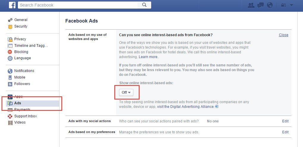 The new opt out setting is improved over the precious opt out options. Previously, opting out was done through a third party vendor, Digital Advertising Alliance. However, this option required users to opt out on every device they used to access Facebook. With the new Facebook based opt out, preferences are set inside Facebook and are tied to the account not the device.